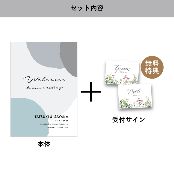 | 無料特典 | 受付サイン1組(新郎用×1組、新婦用×1組) |