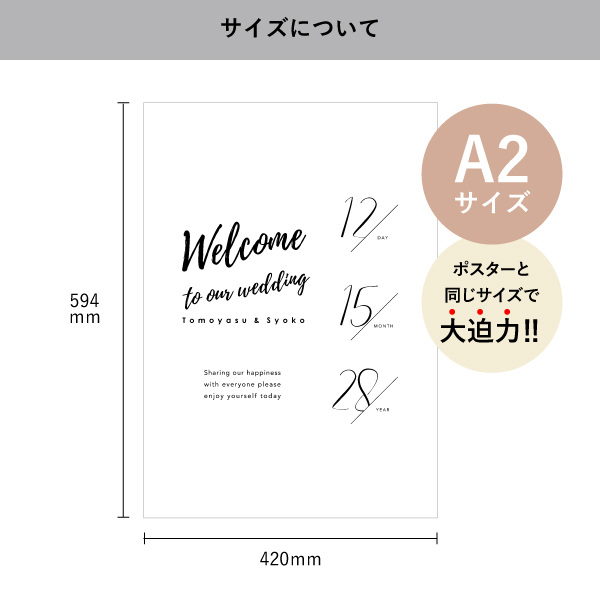 フラットなフォルムにデザインが大きく入るA2サイズのパネルは、ゲストをお出迎えするウェルカムボードとしてピッタリです!