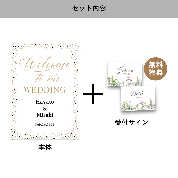 | 無料特典 | 受付サイン1組(新郎用×1組、新婦用×1組) |