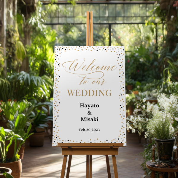 まるで夜空の星のようにちりばめられたきらめくゴールド。おふたりの大切な今までの時間とこれからの時間をより輝かしいものに…。きらきらとした印象のウェルカムボードはホテルやチャペルウェディングにおすすめです。