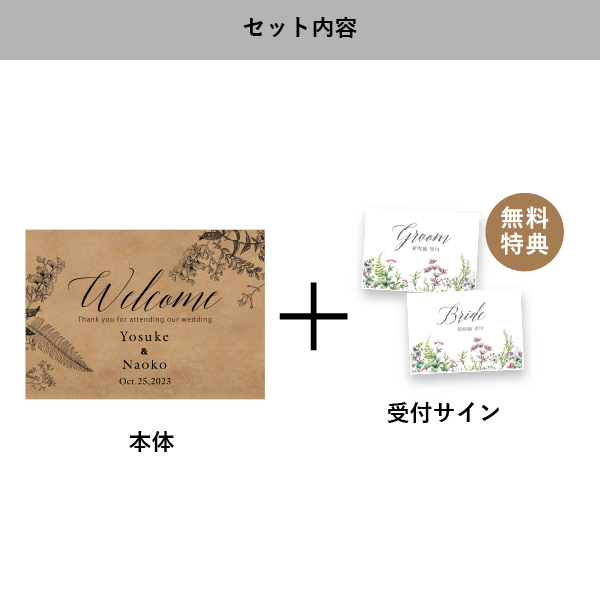 | 無料特典 | 受付サイン1組(新郎用×1組、新婦用×1組) |
