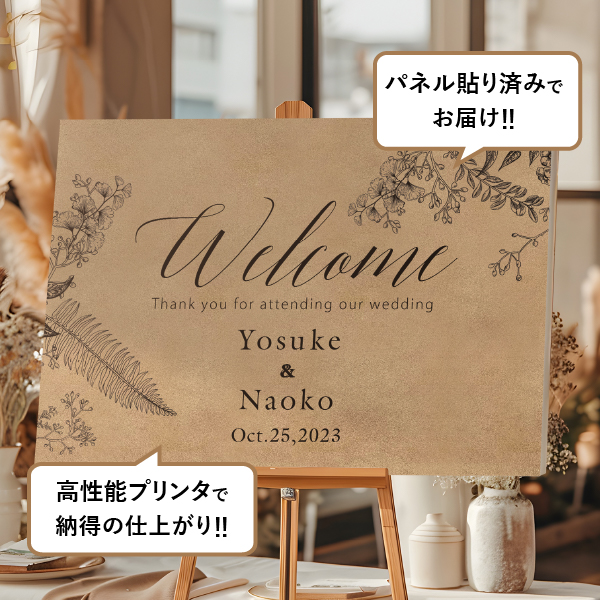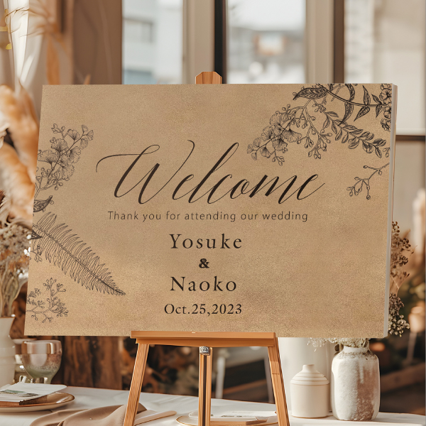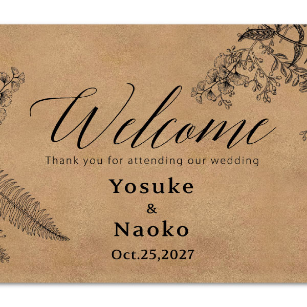 ヴィンテージ感の溢れるクラフト調なカジュアルデザインに、ナチュラルでシックな草花をあしらった一枚です。ナチュラル・ガーデン・カジュアルウェディングにおすすめです。リラックス空間でゲストをお迎えしましょう!