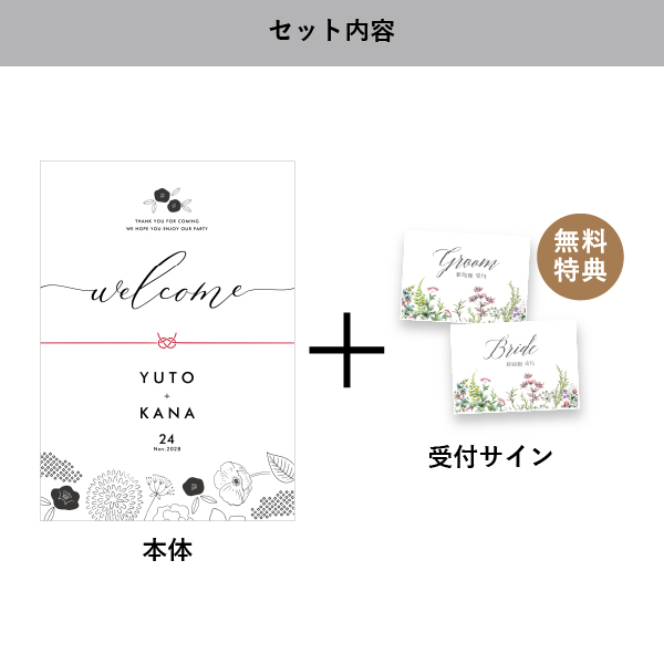 | 無料特典 | 受付サイン1組(新郎用×1組、新婦用×1組) |