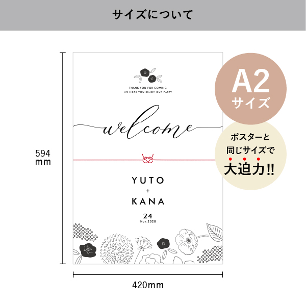 フラットなフォルムにデザインが大きく入るA2サイズのパネルは、ゲストをお出迎えするウェルカムボードとしてピッタリです!