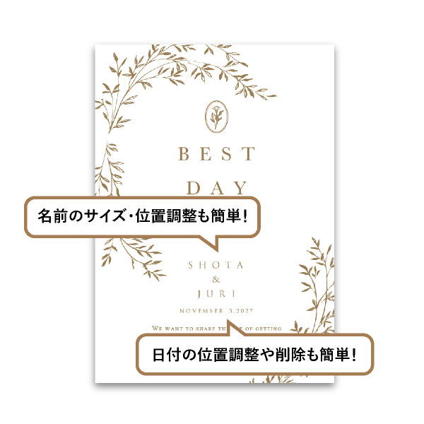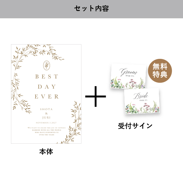 | 無料特典 | 受付サイン1組(新郎用×1組、新婦用×1組) |