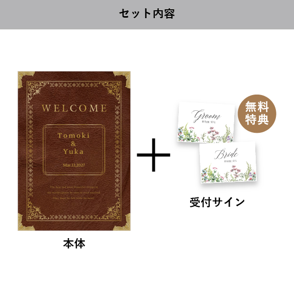 | 無料特典 | 受付サイン1組(新郎用×1組、新婦用×1組) |
