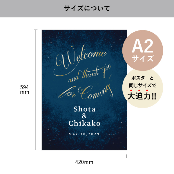 フラットなフォルムにデザインが大きく入るA2サイズのパネルは、ゲストをお出迎えするウェルカムボードとしてピッタリです!
