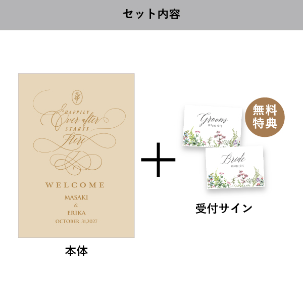 | 無料特典 | 受付サイン1組(新郎用×1組、新婦用×1組) |