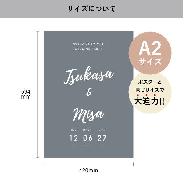 フラットなフォルムにデザインが大きく入るA2サイズのパネルは、ゲストをお出迎えするウェルカムボードとしてピッタリです!