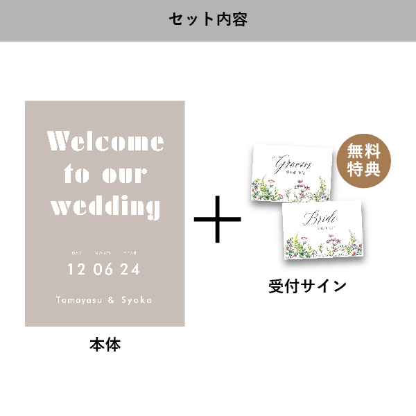 | 無料特典 | 受付サイン1組(新郎用×1組、新婦用×1組) |