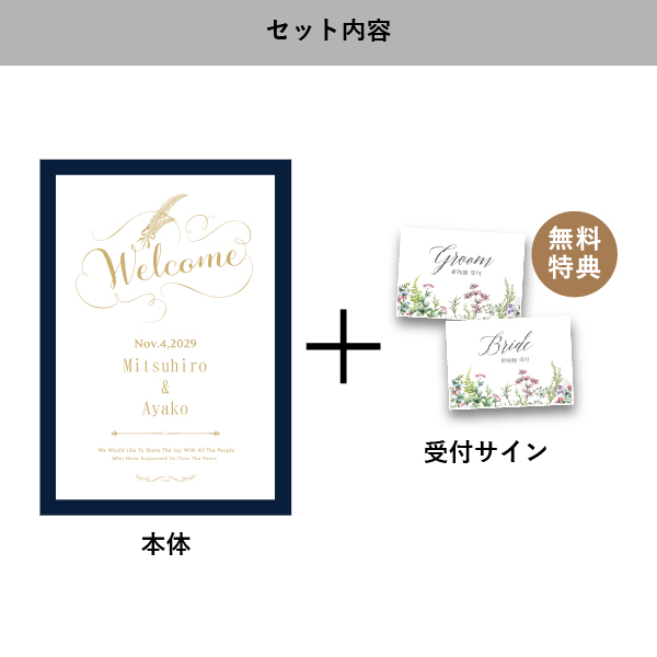 | 無料特典 | 受付サイン1組(新郎用×1組、新婦用×1組) |