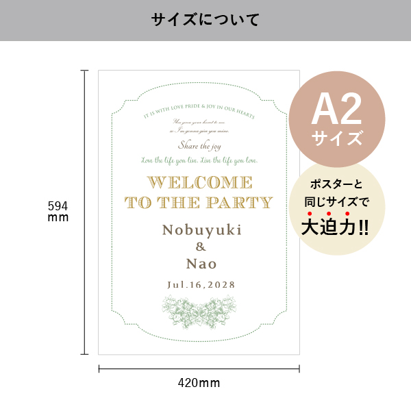 フラットなフォルムにデザインが大きく入るA2サイズのパネルは、ゲストをお出迎えするウェルカムボードとしてピッタリです!