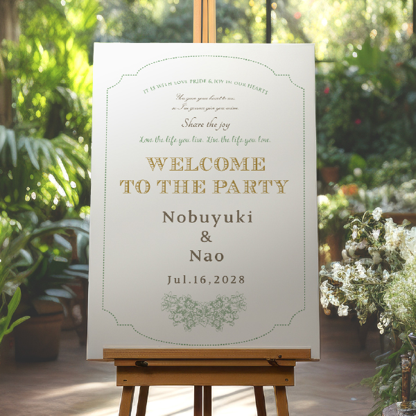 | 無料特典 | 受付サイン1組(新郎用×1組、新婦用×1組) |