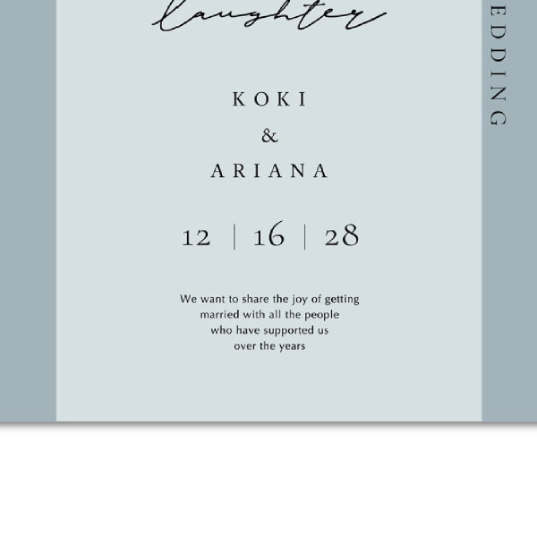 落ち着いたなじみやすいニュアンスカラー。2色のコントラストはおふたりを物語っているよう。どのテイストの会場にもマッチするこなれ感のあるトレンドアイテムです。やわらかいブルーベースのくすみカラートーンはゲストへの優しさと思いやりを感じます。