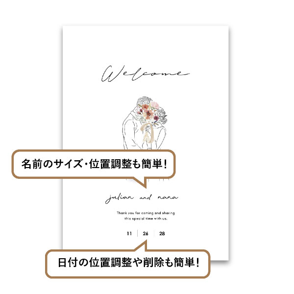 | 無料特典 | 受付サイン1組(新郎用×1組、新婦用×1組) |