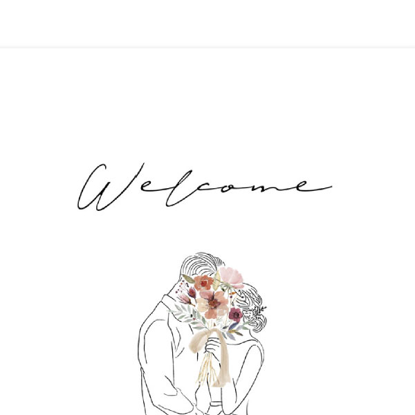 ブーケと洋装の新郎新婦のイラストがまるで前撮りのワンカットのよう。アモールはスペイン語で「愛」という意味。おふたりの愛をゲストの方にもお届けできるアイテム。シンプルなデザインに甘さ控えめの大人っぽいイラストは、どのテイストにもマッチするアイテムです。
