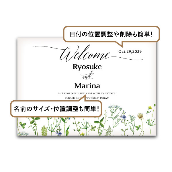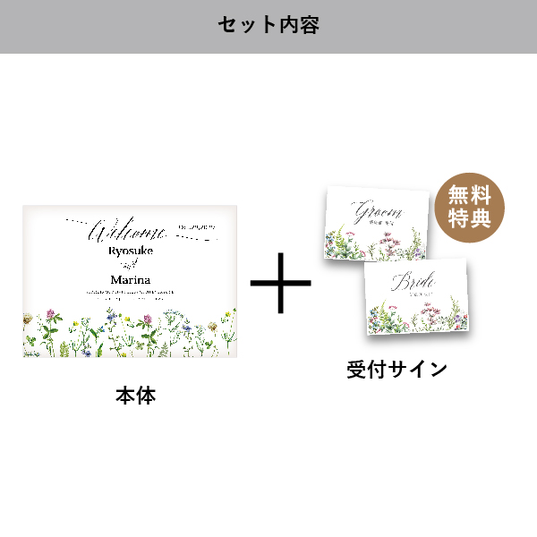 | 無料特典 | 受付サイン1組(新郎用×1組、新婦用×1組) |