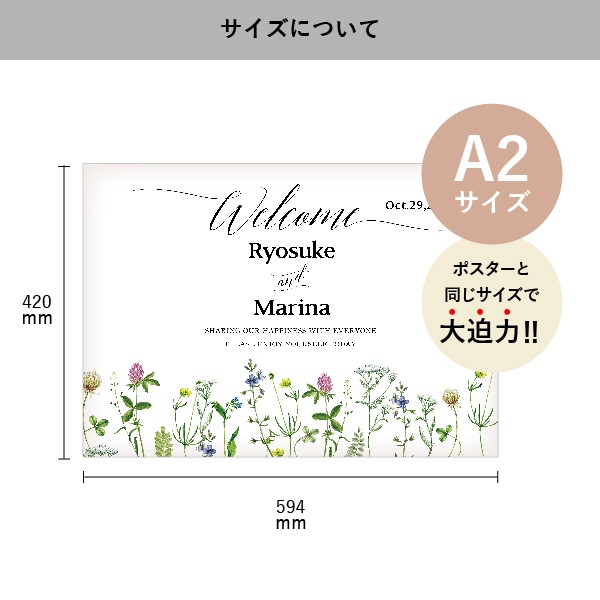 フラットなフォルムにデザインが大きく入るA2サイズのパネルは、ゲストをお出迎えするウェルカムボードとしてピッタリです!