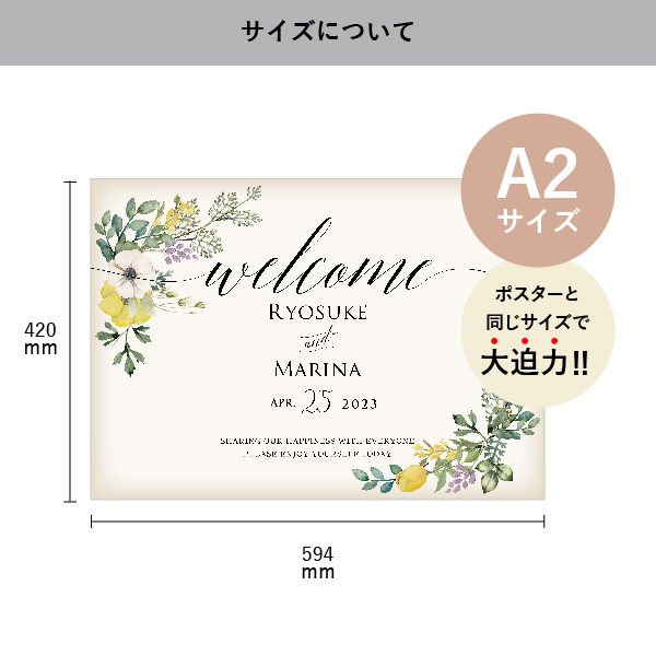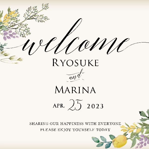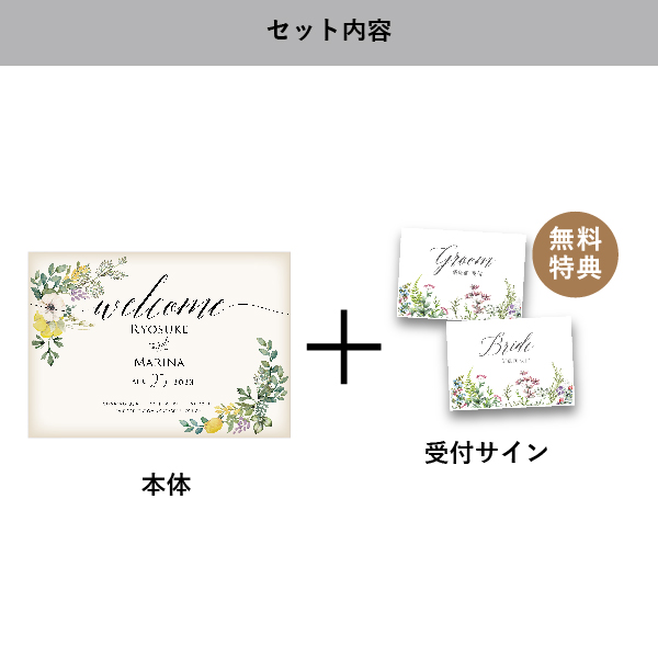 | 無料特典 | 受付サイン1組(新郎用×1組、新婦用×1組) |