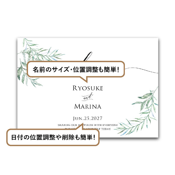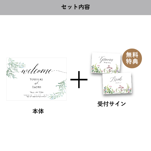 | 無料特典 | 受付サイン1組(新郎用×1組、新婦用×1組) |