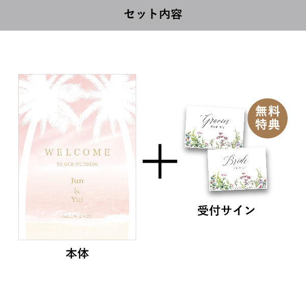 | 無料特典 | 受付サイン1組(新郎用×1組、新婦用×1組) |