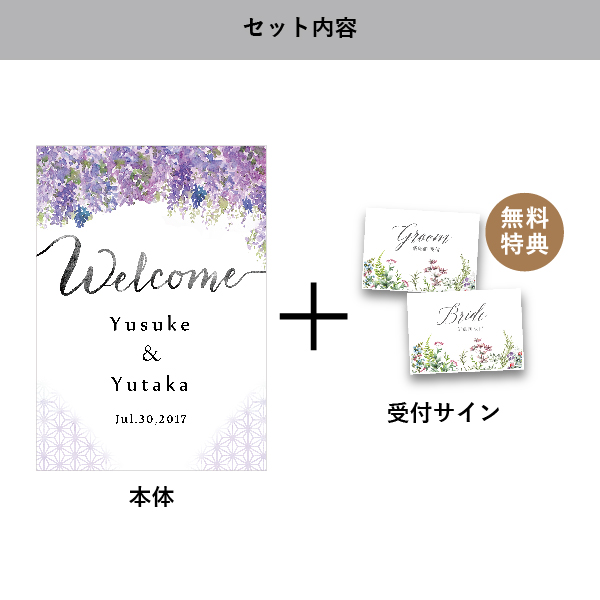 | 無料特典 | 受付サイン1組(新郎用×1組、新婦用×1組) |