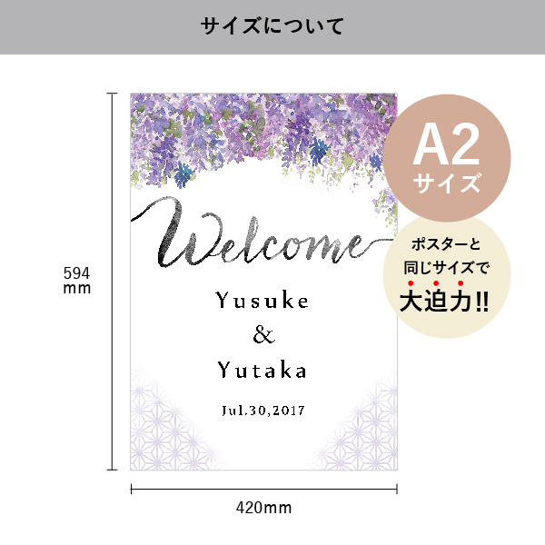 フラットなフォルムにデザインが大きく入るA2サイズのパネルは、ゲストをお出迎えするウェルカムボードとしてピッタリです!