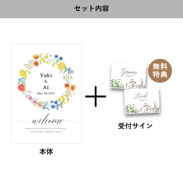 | 無料特典 | 受付サイン1組(新郎用×1組、新婦用×1組) |