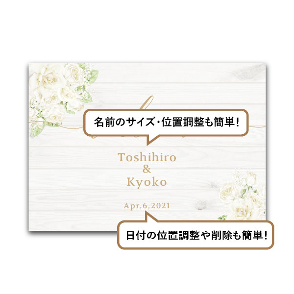 | 無料特典 | 受付サイン1組(新郎用×1組、新婦用×1組) |