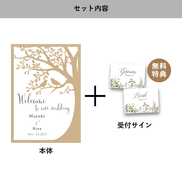 | 無料特典 | 受付サイン1組(新郎用×1組、新婦用×1組) |
