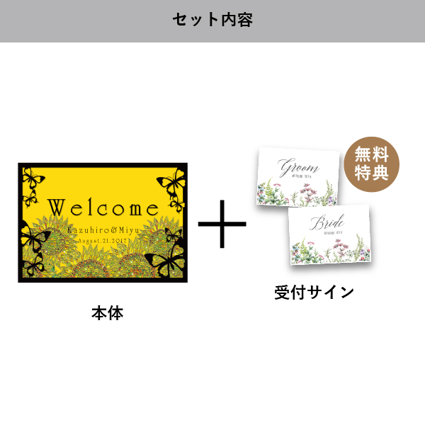 | 無料特典 | 受付サイン1組(新郎用×1組、新婦用×1組) |