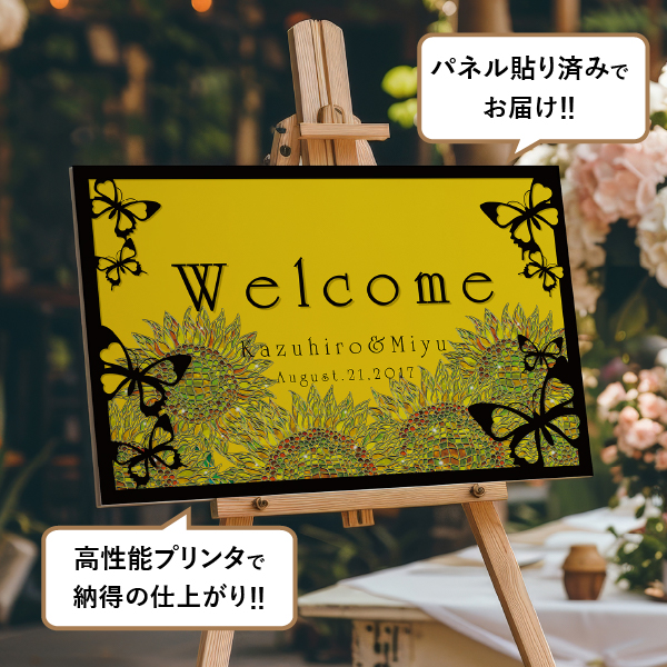 グラフィックウェルカムボード(A2パネル)ブライトバタフライ:向日葵|ウェルカムボードならPIARY(ピアリー)