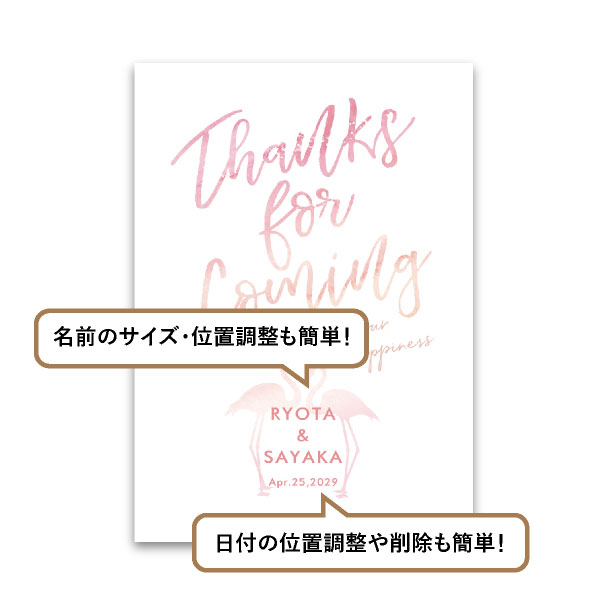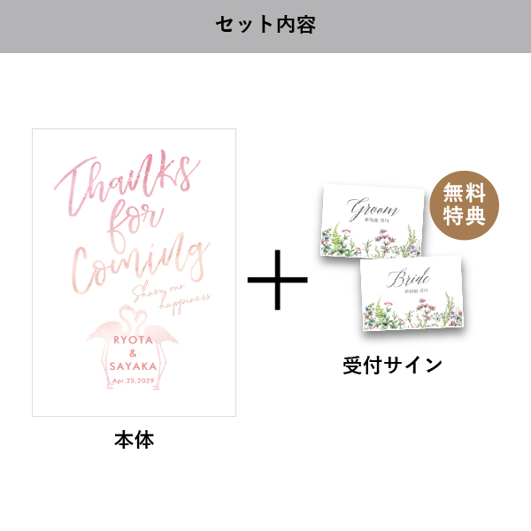 | 無料特典 | 受付サイン1組(新郎用×1組、新婦用×1組) |