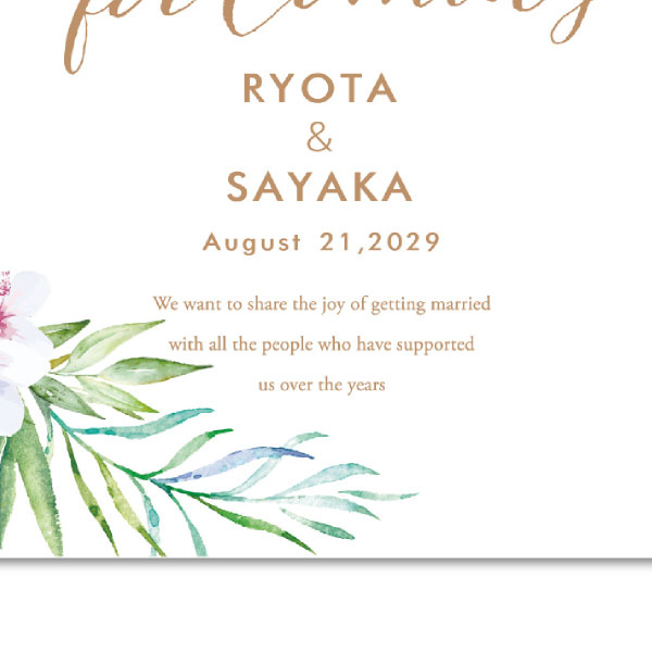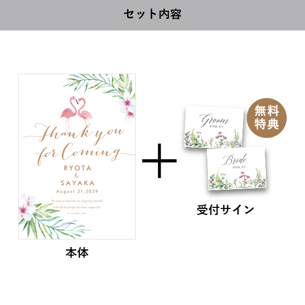 | 無料特典 | 受付サイン1組(新郎用×1組、新婦用×1組) |