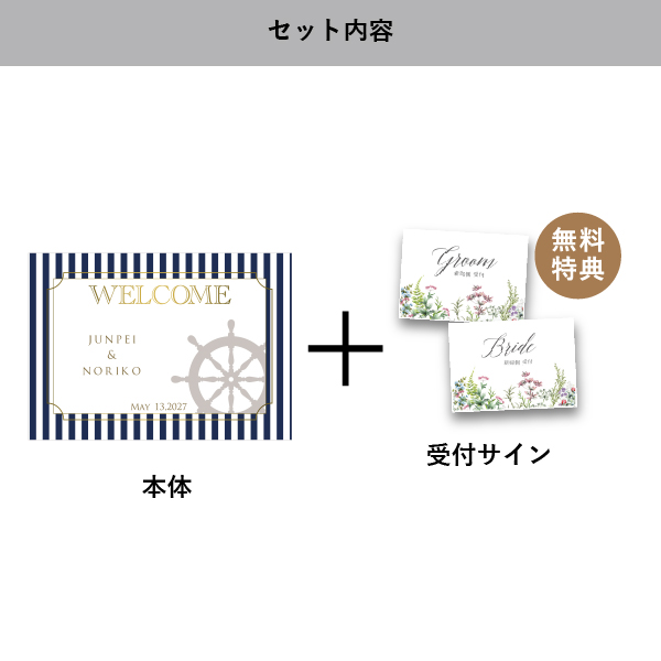 | 無料特典 | 受付サイン1組(新郎用×1組、新婦用×1組) |