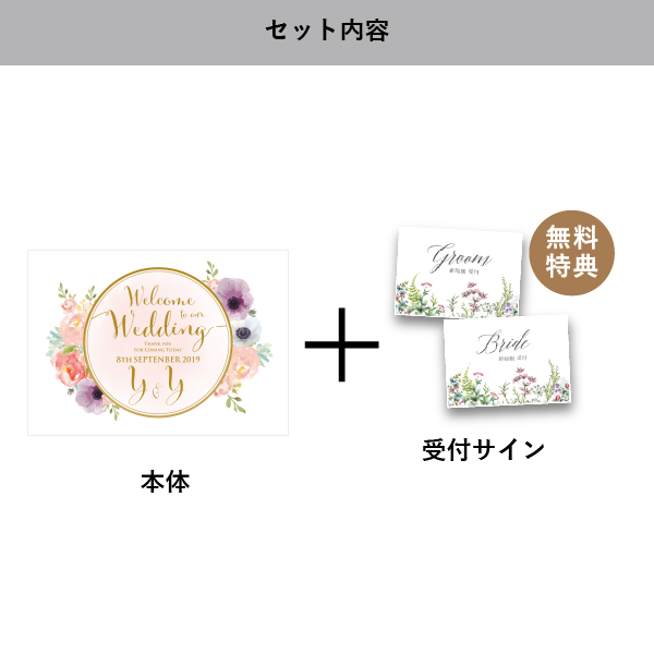 | 無料特典 | 受付サイン1組(新郎用×1組、新婦用×1組) |