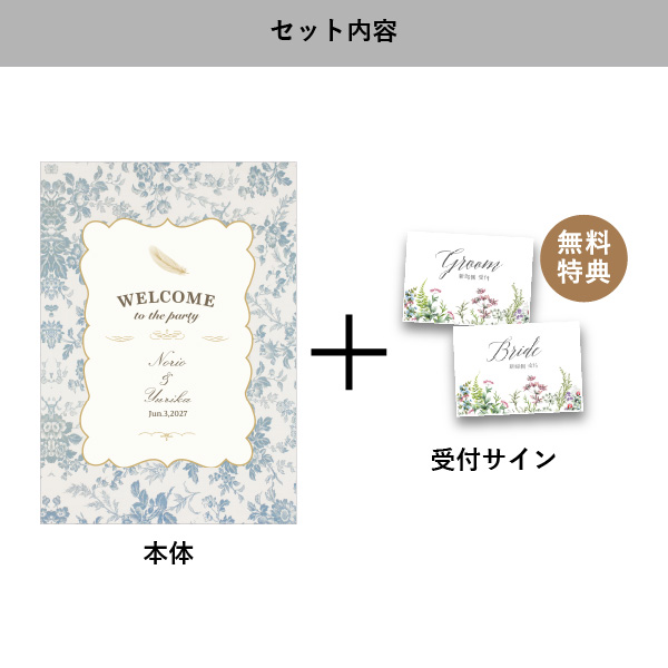 | 無料特典 | 受付サイン1組(新郎用×1組、新婦用×1組) |