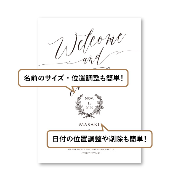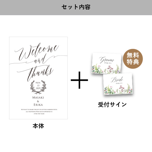 | 無料特典 | 受付サイン1組(新郎用×1組、新婦用×1組) |