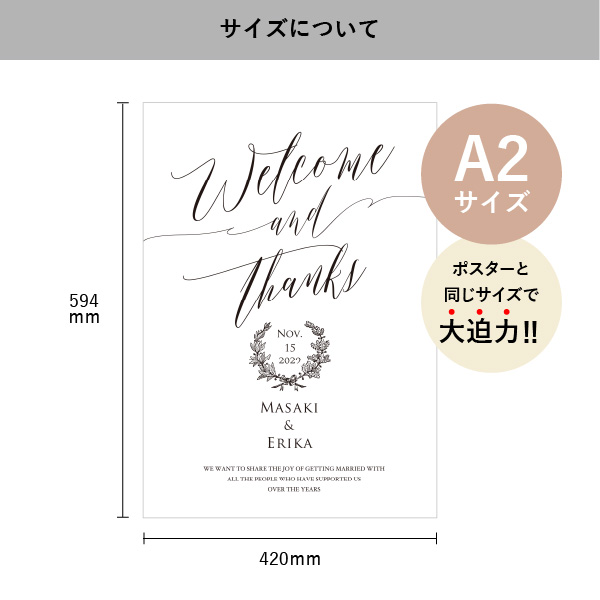フラットなフォルムにデザインが大きく入るA2サイズのパネルは、ゲストをお出迎えするウェルカムボードとしてピッタリです!