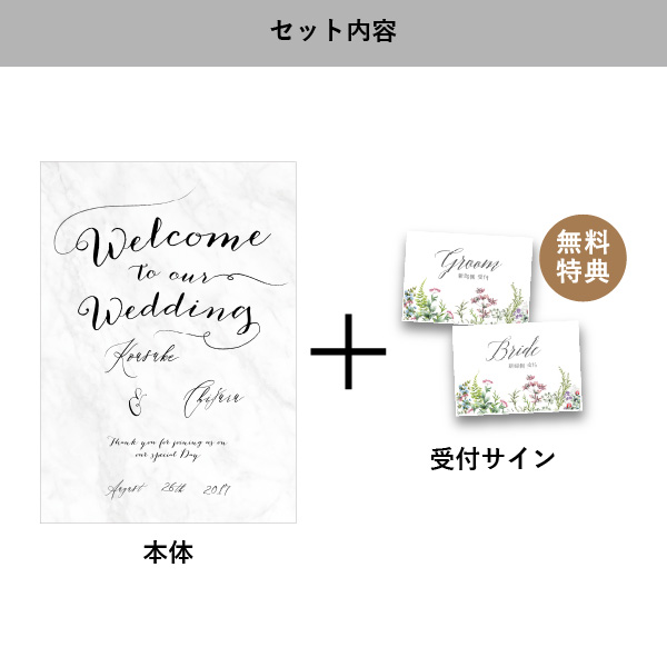 | 無料特典 | 受付サイン1組(新郎用×1組、新婦用×1組) |