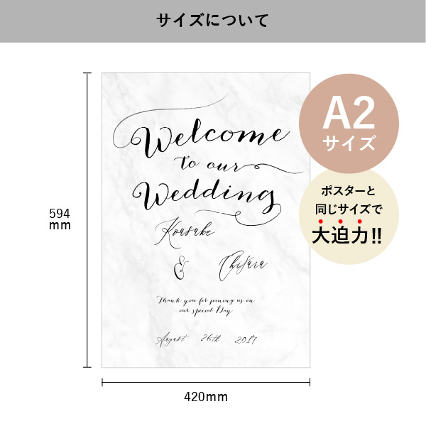 フラットなフォルムにデザインが大きく入るA2サイズのパネルは、ゲストをお出迎えするウェルカムボードとしてピッタリです!