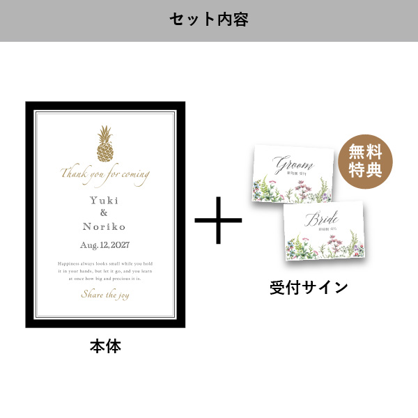 | 無料特典 | 受付サイン1組(新郎用×1組、新婦用×1組) |