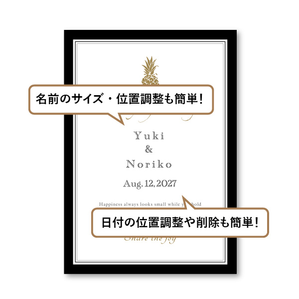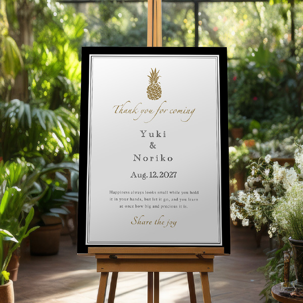 憧れの大人なリゾートウェディングを演出。トロピカルフルーツでも代表的なパインがシックにデザインされた一枚です。洗練されたスタイリッシュなリゾートスタイルで、ゲストをお迎えしましょう!