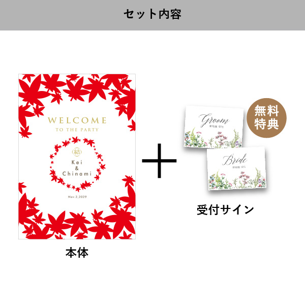 | 無料特典 | 受付サイン1組(新郎用×1組、新婦用×1組) |