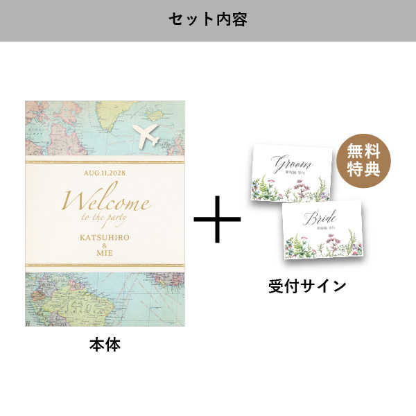 | 無料特典 | 受付サイン1組(新郎用×1組、新婦用×1組) |