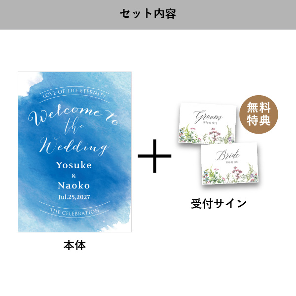 | 無料特典 | 受付サイン1組(新郎用×1組、新婦用×1組) |
