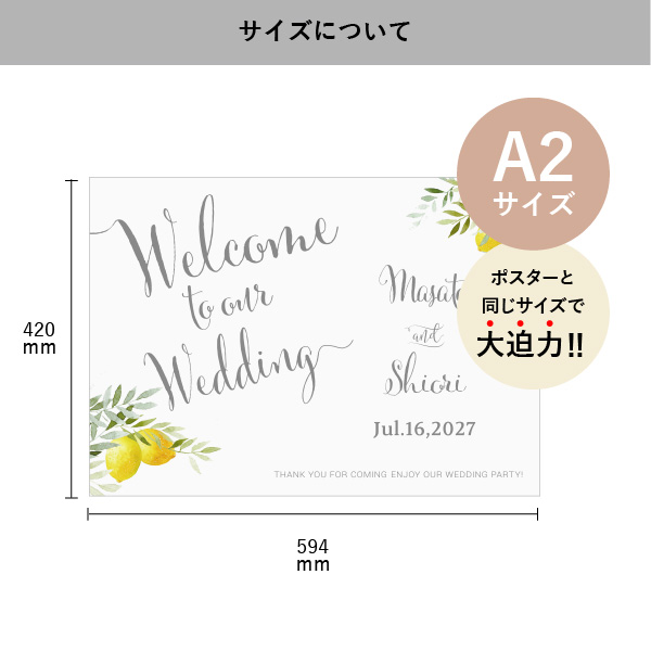 フラットなフォルムにデザインが大きく入るA2サイズのパネルは、ゲストをお出迎えするウェルカムボードとしてピッタリです!