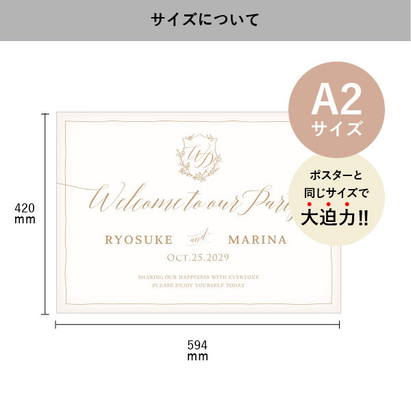 フラットなフォルムにデザインが大きく入るA2サイズのパネルは、ゲストをお出迎えするウェルカムボードとしてピッタリです!