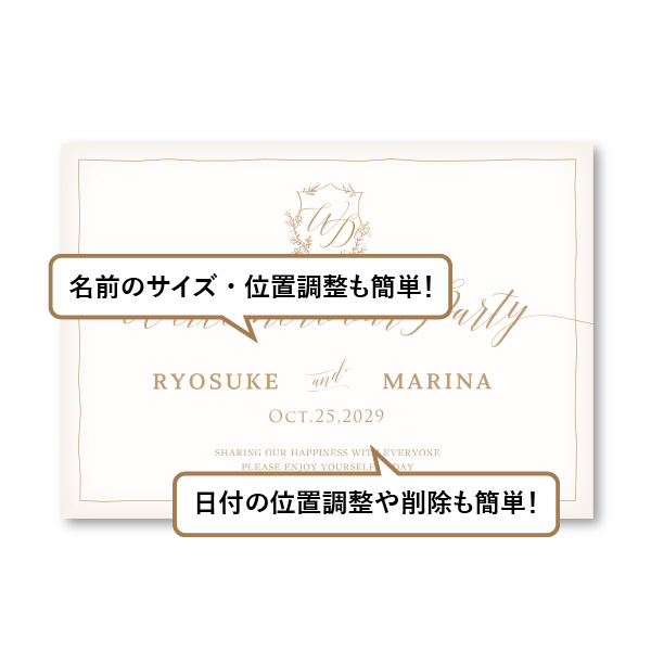 | 無料特典 | 受付サイン1組(新郎用×1組、新婦用×1組) |