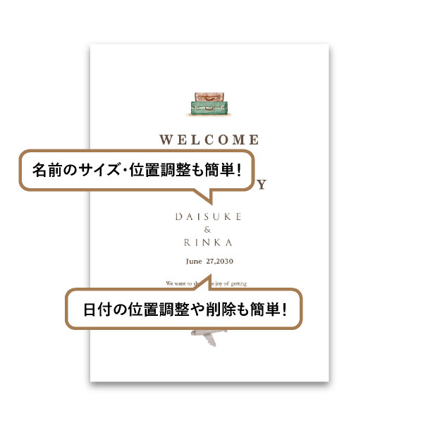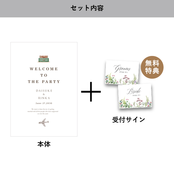 | 無料特典 | 受付サイン1組(新郎用×1組、新婦用×1組) |